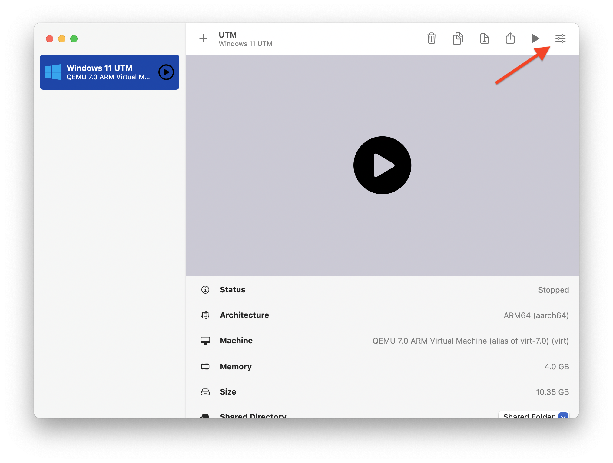 您可以在此处调整很多设置,尤其是 CPU 内核和内存设置。(我之前建议在您首次设置 UTM 时将这些值保留为默认值。)如果您发现您的 VM 太慢,您可以尝试分配更多内存和/或 CPU 内核。只有在进行处理器或 RAM 密集型工作时才需要这样做。