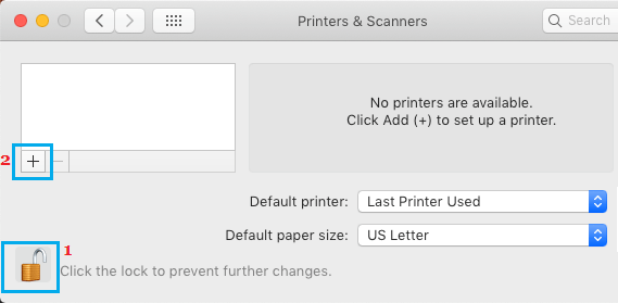 5.重置过程完成后,单击+ 按钮打开添加打印机对话框。