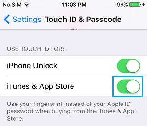 在下一个屏幕上,将使用 Touch ID旁边的切换开关移动到ON位置。