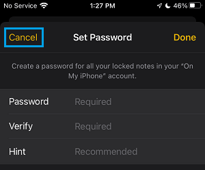 5.在设置密码屏幕上,不要输入任何密码,然后点击取消。