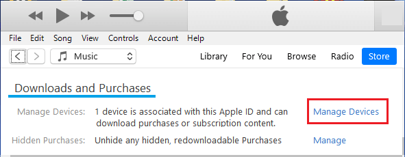 在下一个屏幕上,向下滚动到下载和购买部分,然后单击管理设备选项。