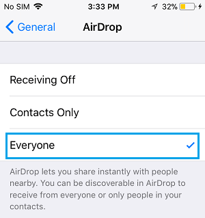 转到设置>常规> AirDrop >在下一个屏幕上,点击所有人。