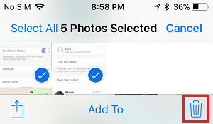 3.接下来,选择要从设备中删除的自拍或自拍,然后点击位于底部菜单(右下角)的垃圾桶图标。