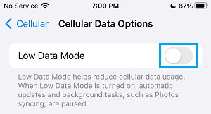 如果您的 iPhone 设置为低数据模式,WhatsApp 视频通话可能无法正常工作。因此,转到“设置” > “蜂窝” > “蜂窝数据”选项并禁用“低数据模式”。