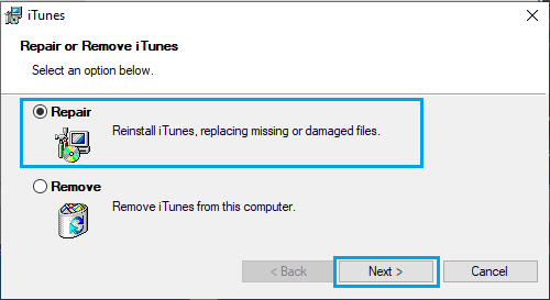 如果 iTunes 仍未检测到 iPhone,则问题也可能是由于计算机上的 iTunes 软件损坏或损坏。