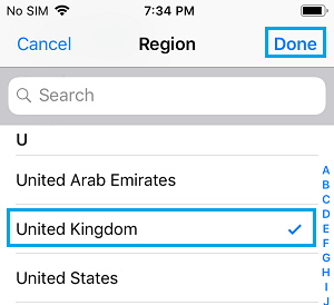 转到设置>通用>语言和地区 >地区> 在下一个屏幕上,选择英国作为你的地区,然后点击完成。