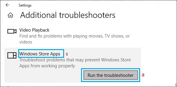在下一个屏幕上,选择Windows Store Apps并单击Run the Troubleshooter。