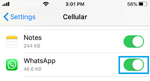 转到设置>蜂窝> 将WhatsApp旁边的开关移动到打开位置。