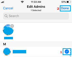 6.在下一个屏幕上,选择您要指定为组管理员的一个或多个成员,然后点击完成。