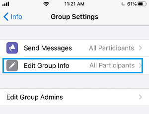 4.在 WhatsApp Group Info 屏幕上,向下滚动并点击Group Settings。