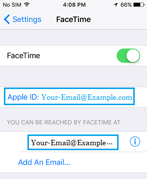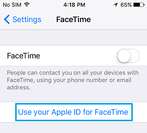 2.在下一个屏幕上,确保FaceTime已打开并且您可以看到您的Apple ID。
