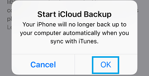 3.在出现的弹出窗口中,点击确定以在您的设备上启动 iCloud 备份。