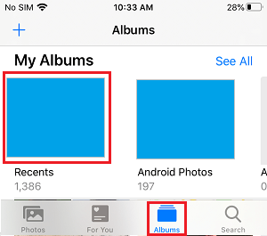 1.打开 iPhone 上的照片应用程序,然后点击底部菜单中的相册选项卡。