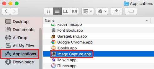 3.在左窗格中选择应用程序。在右窗格中,双击图像捕获应用程序。