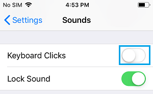 3.在声音屏幕上,向下滚动并关闭键盘点击选项。