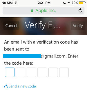 9. Apple 现在将向您的新电子邮件地址发送验证码。通过转到您的电子邮件并在下一个屏幕上输入验证码来获取验证码。