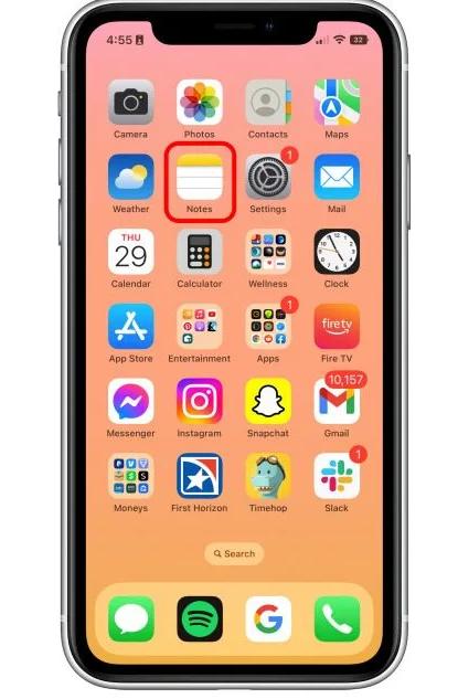 - 在顶部,您应该会看到您的 Quick Notes 文件夹。 点击它以访问快速笔记。