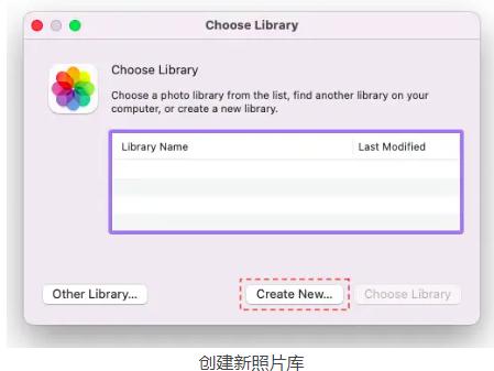 第 1 步:要在 macOS 上创建新的照片库,请先按“ Option ”键并打开照片应用程序。这将提示弹出一个窗口,标题为“选择库”。从那里,只需选择“新建”即可!