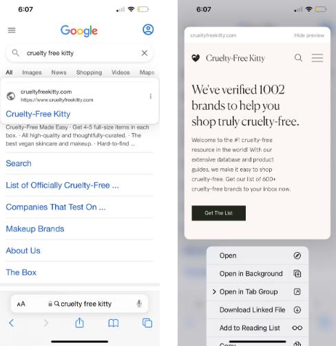 如果您不确定某个网站是否是您要查找的网站,您可以在 Safari 中长按链接先进行预览。然后会弹出一个小窗口,向您显示网站的部分内容及其内容。