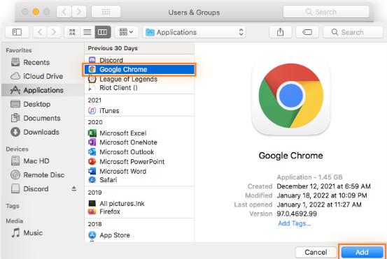 - 单击列表下方的加号按钮即可查看可用的应用程序。选择一个应用程序并单击“添加”以将其设为启动程序。