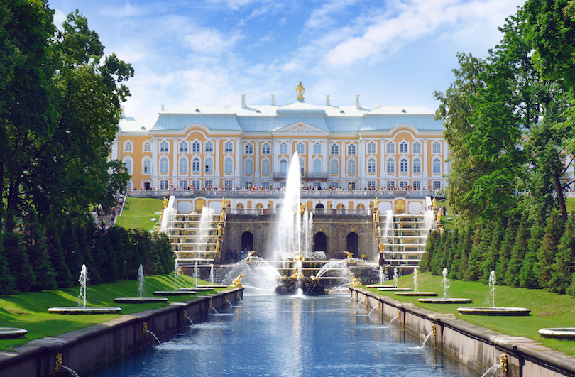 绰号“俄罗斯凡尔赛宫”。彼得夏宫宫的规模、规模和辉煌无疑可以与太阳王的皇家居所相媲美。宫殿及其园景花园占地广阔,位于圣彼得堡郊外的芬兰湾沿岸。
