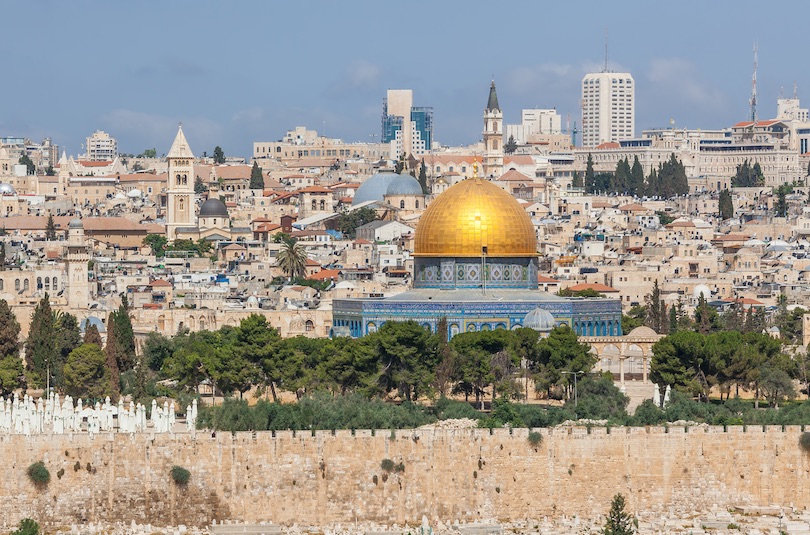 圆顶清真寺最初于公元 691 年完成,是伊斯兰建筑的第一个也是最熟悉的成就之一。它位于圣殿山上,是世界上最具争议的宗教场所之一。尽管有共同的概念,岩石圆顶不是一座清真寺,而是一座保护其高高天花板下的神圣岩石的神殿。圆顶可能是老城最壮观的建筑,其顶部是一个从远处可见的耀眼金色圆顶,内部层层叠叠的是闪闪发光的陶瓷、马赛克和阿拉伯书法。